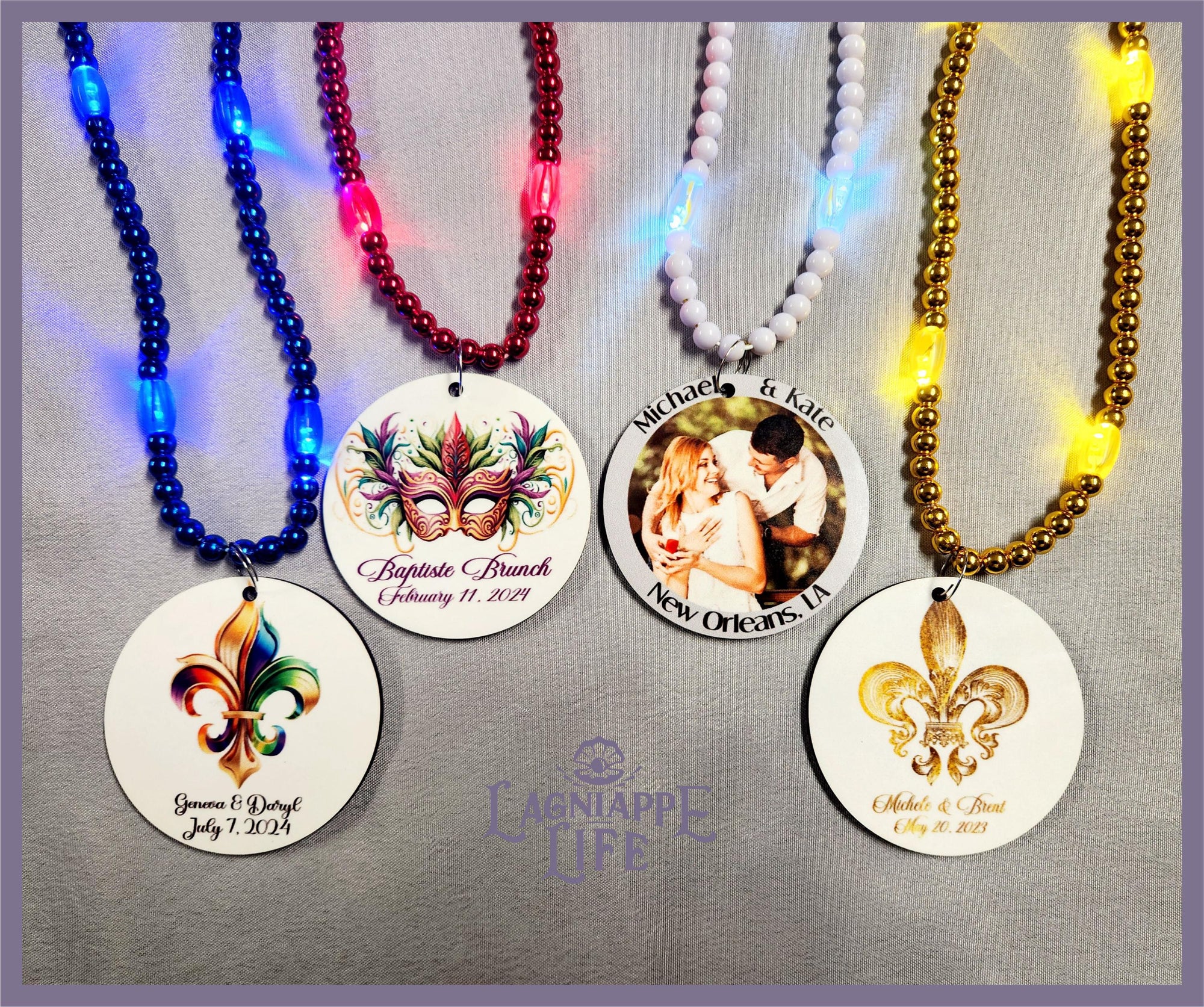 Personalize Flashing Necklace Beads Customize Double Sided Medallion Beads Flashing Lights Party Favors Wedding Personalized Light Up Beads