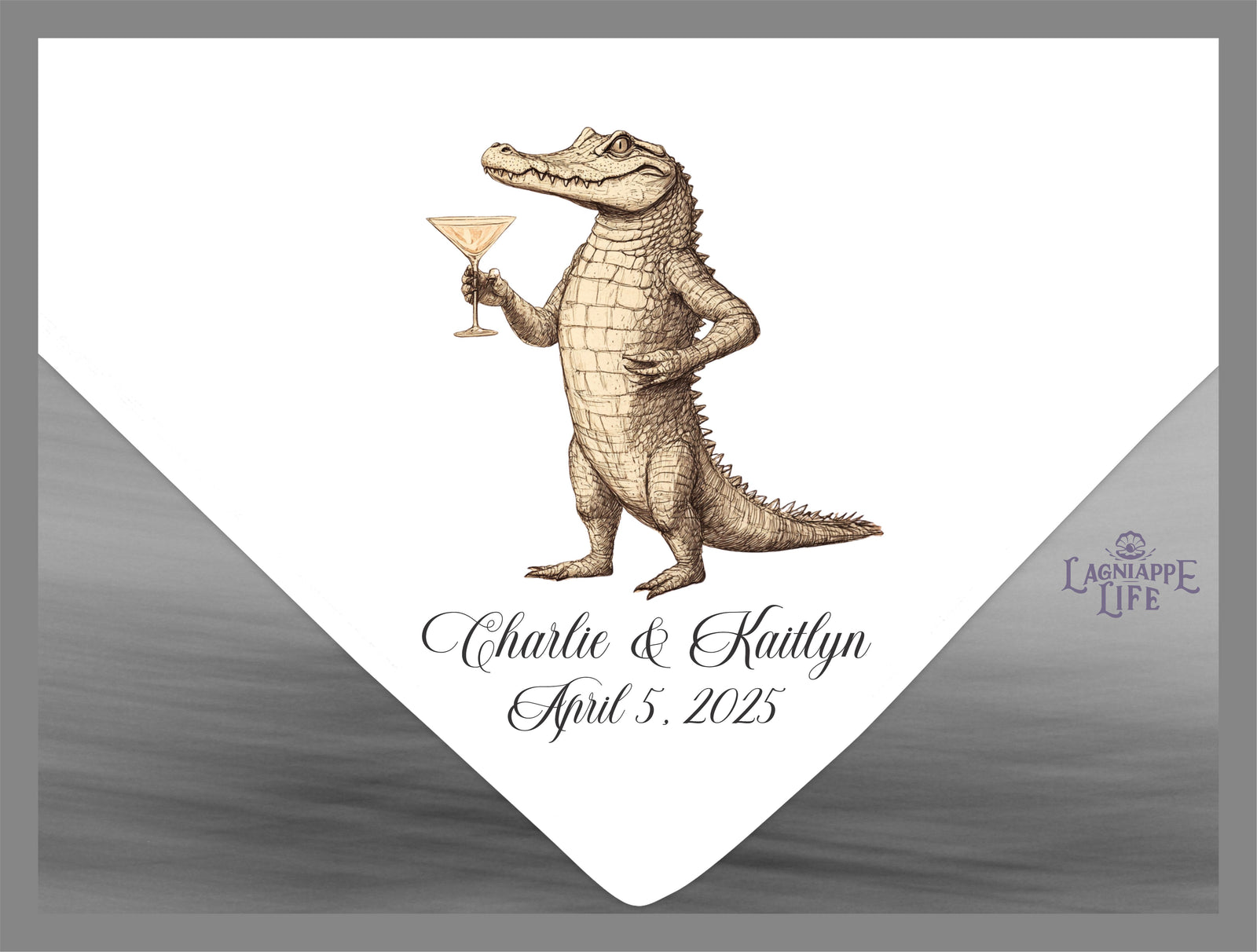 Bride Groom Alligators Dancing Handkerchiefs Personalize Second Line Handkerchiefs Names Date Wedding Favors Custom Made Weddings Events