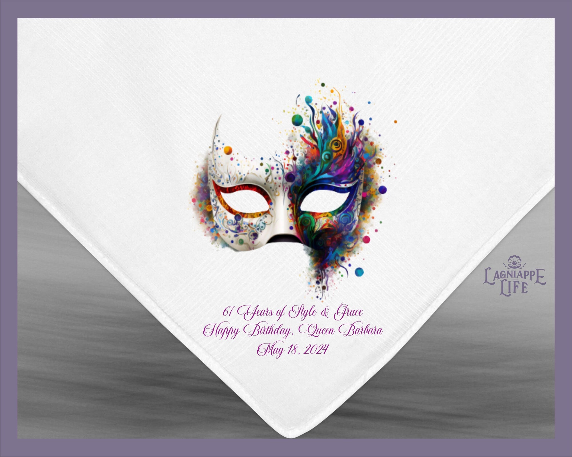 Carnival Mask Handkerchief Second Line Handkerchief Mardi Gras Krew Personalize Wedding Handkerchiefs Dance Second Line Mardi Gras Ball