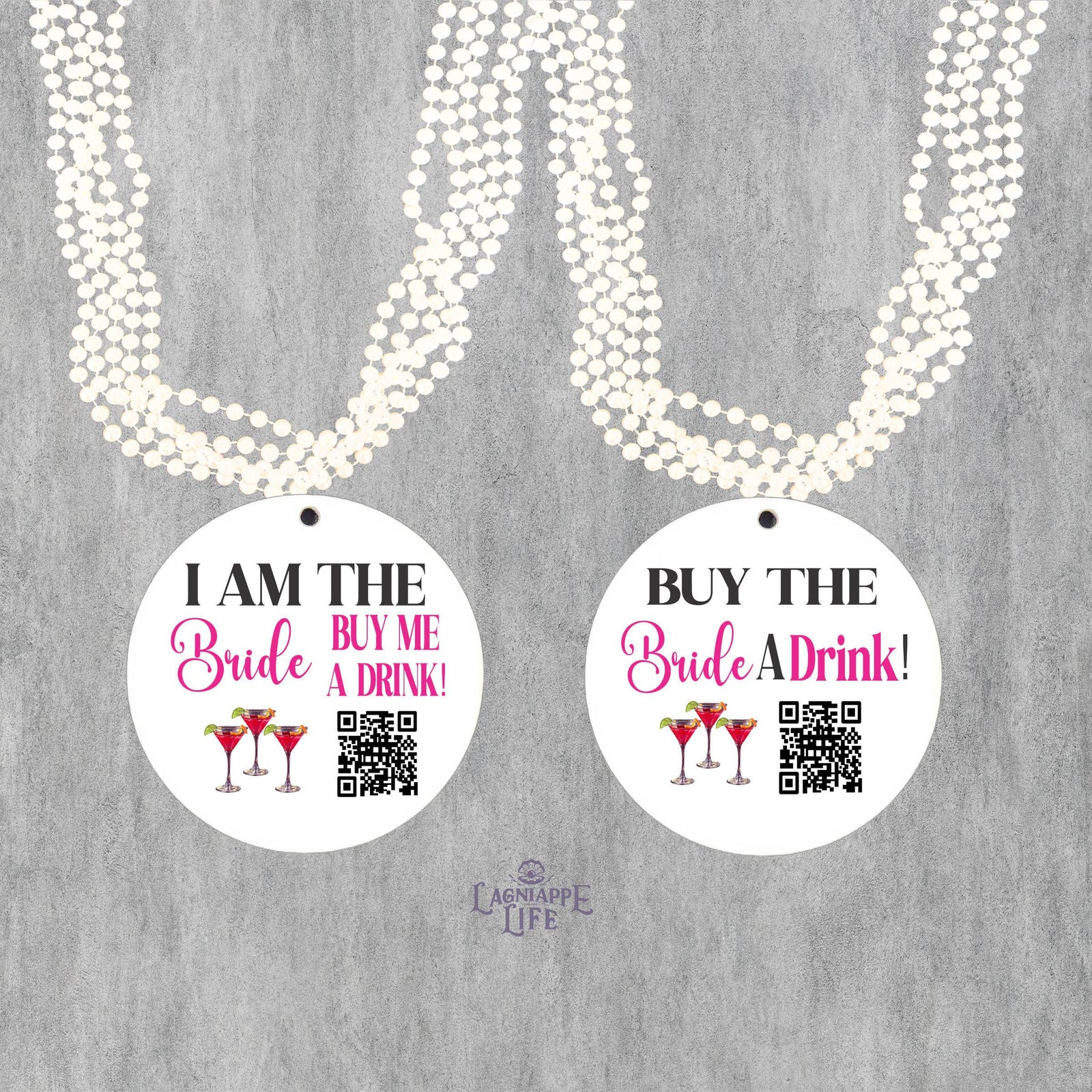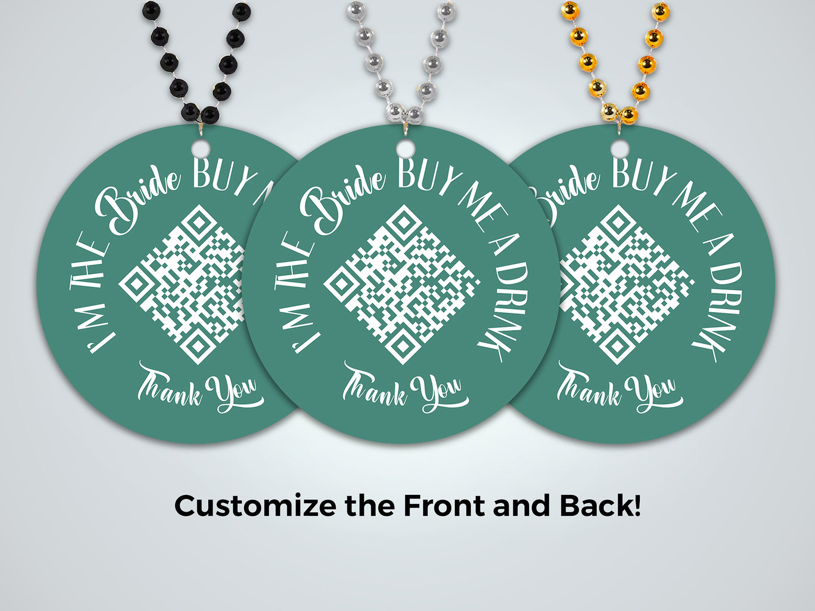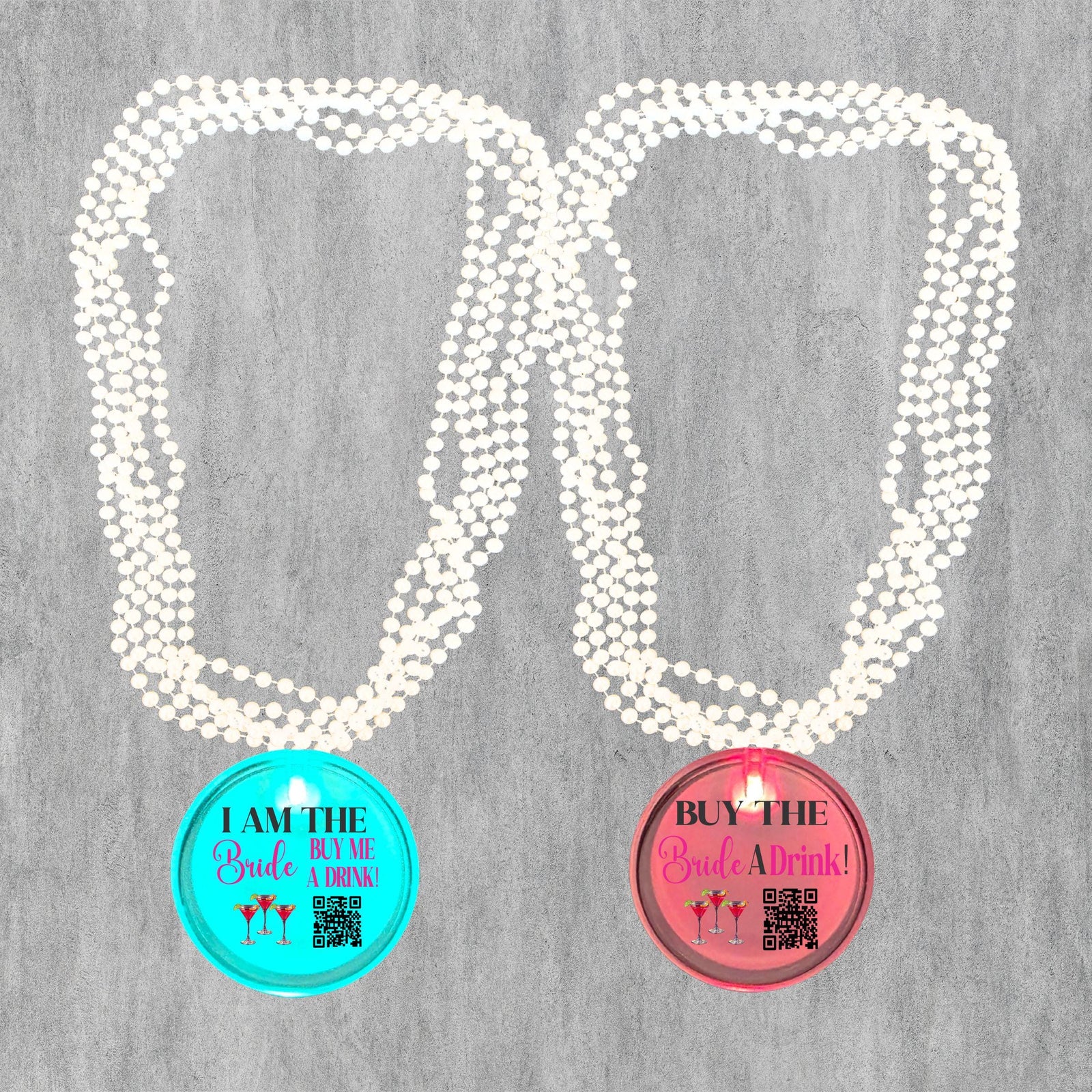 LED Buy the Bride a Drink / Shot Medallion with Beaded Necklace Bachelorette Party Favor with Venmo QR Code