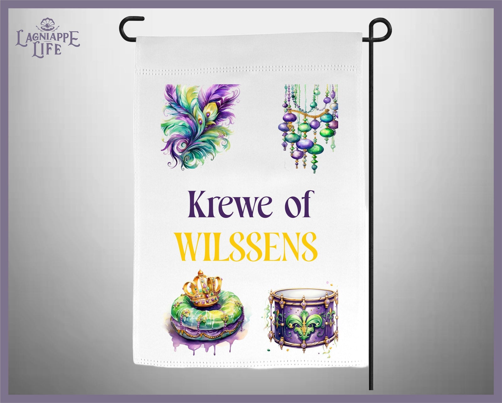 Mardi Gras Garden Flag, Custom Last Name Mardi Gras Garden Decor, New Orleans Mardi Gras Yard Sign, Fat Tuesday, Parade Season Flag