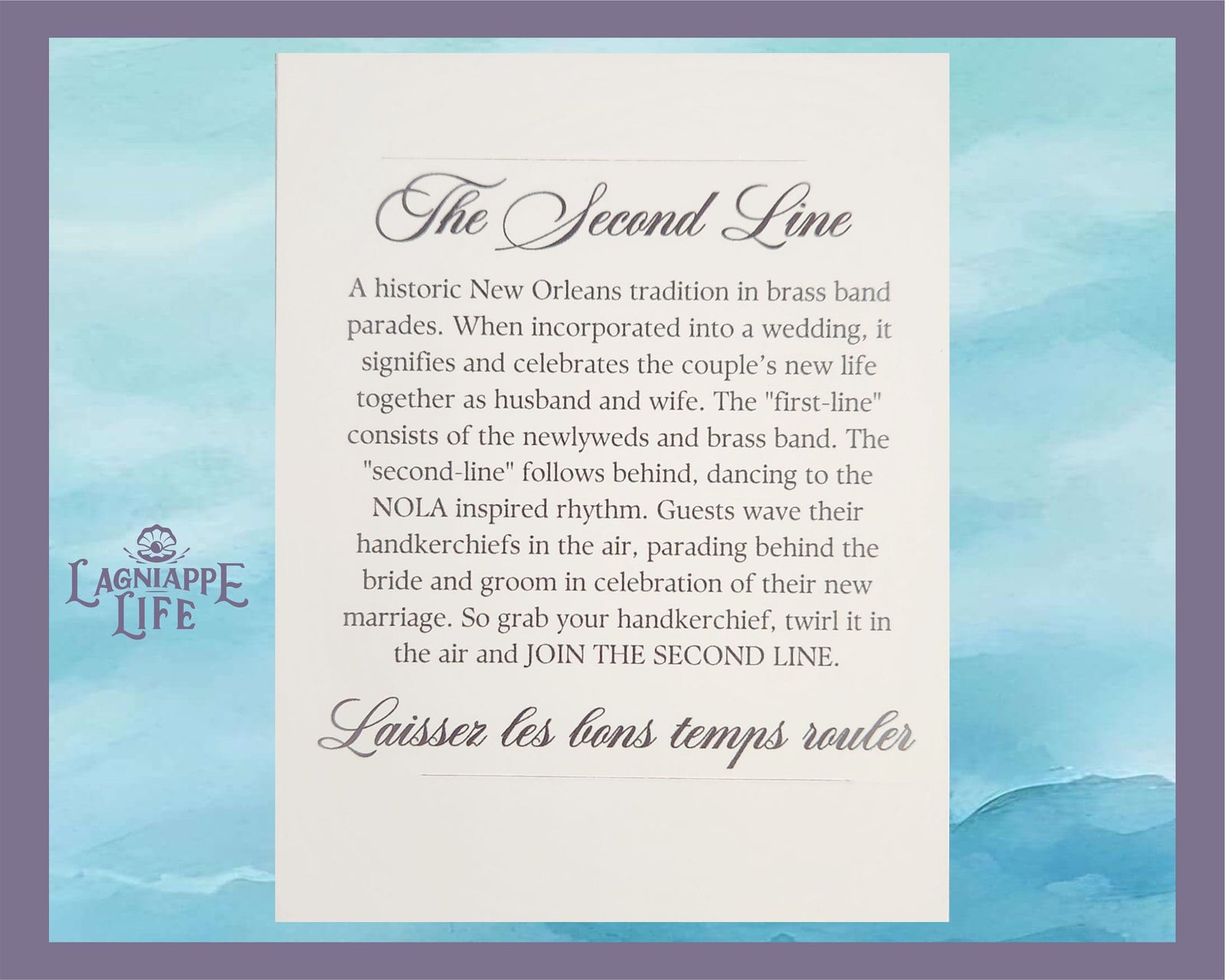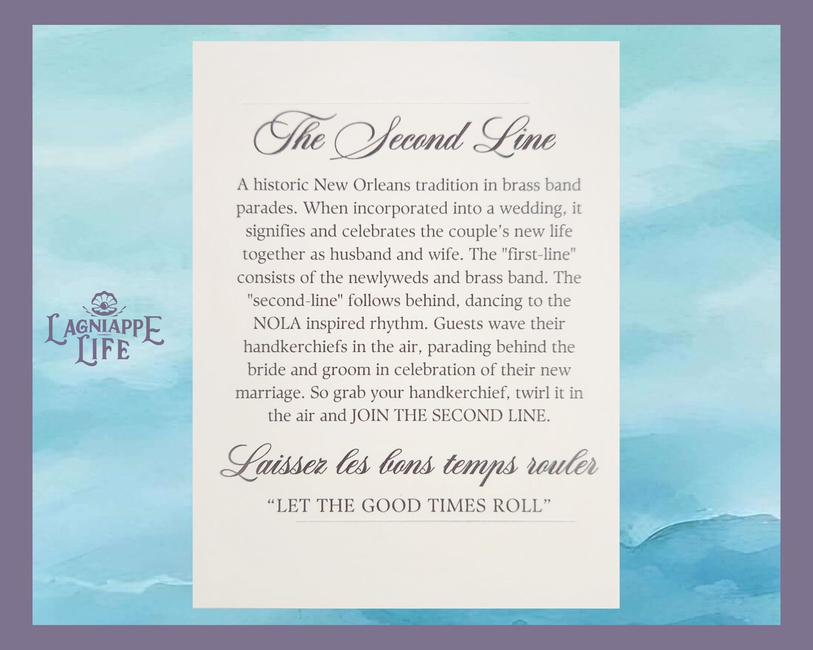 Second Line History Card Sleeve Traditional New Orleans Parade Explanation for Wedding Handkerchiefs & Favors Les Le Bons Temps Rouler