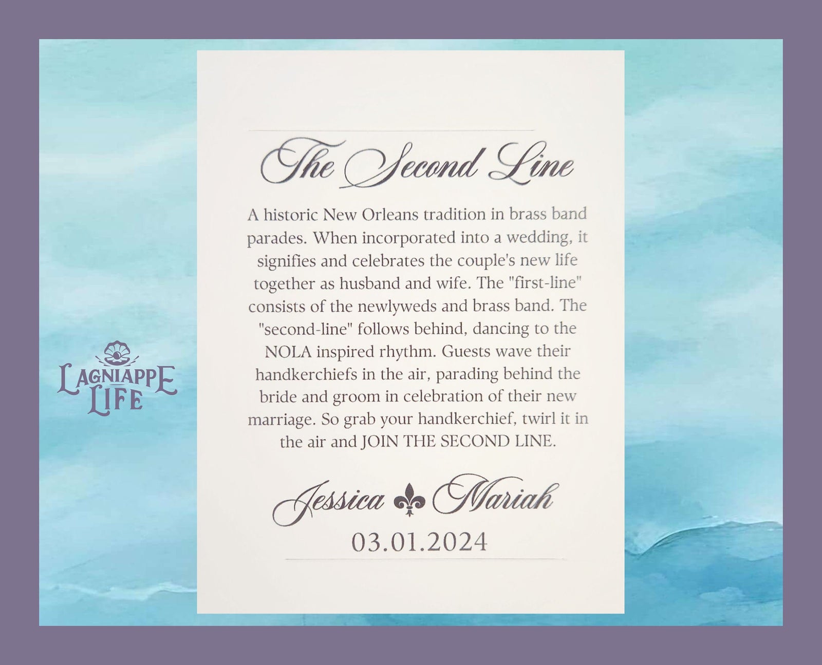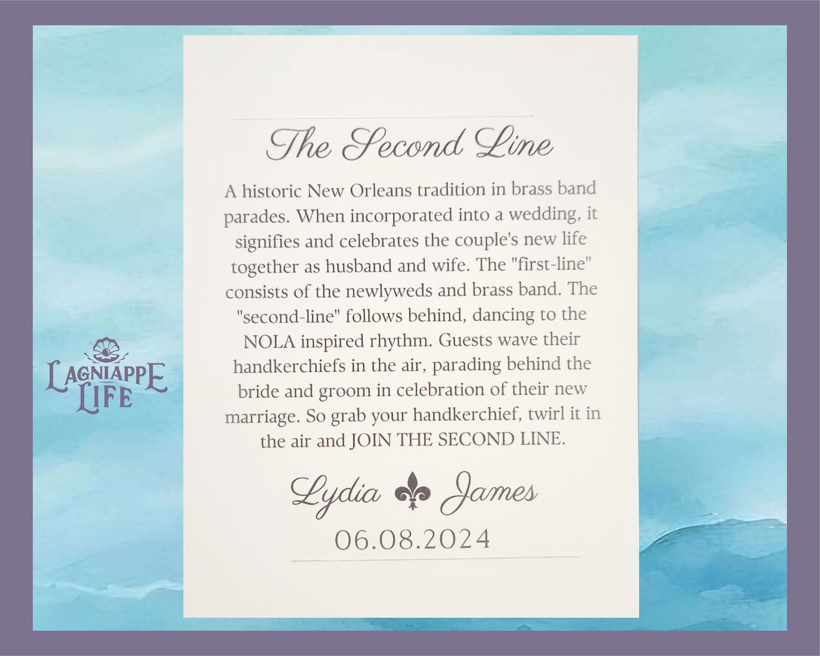 Second Line History Card Sleeve Traditional New Orleans Parade Explanation for Wedding Handkerchiefs & Favors