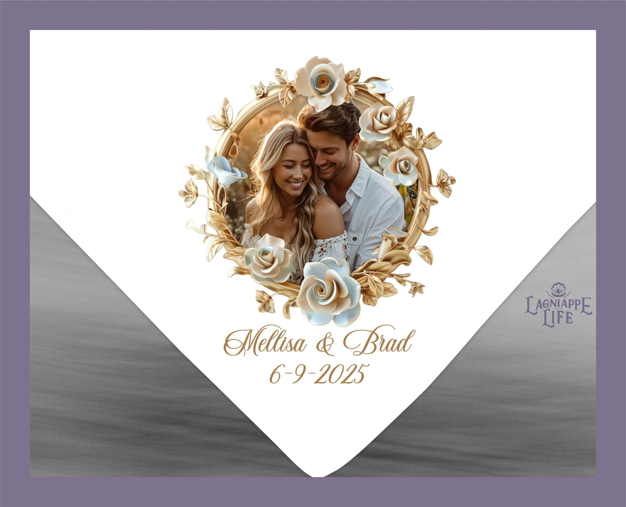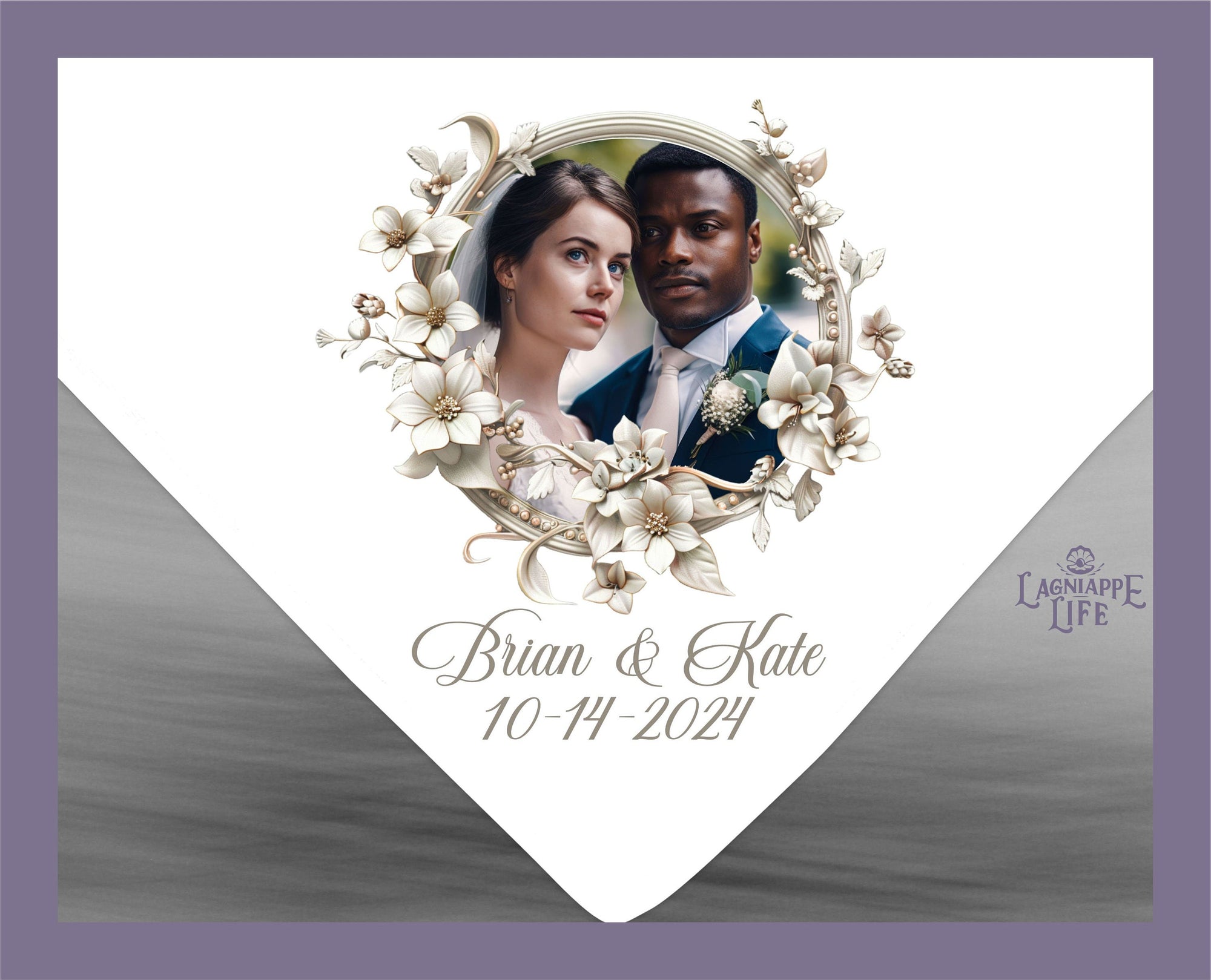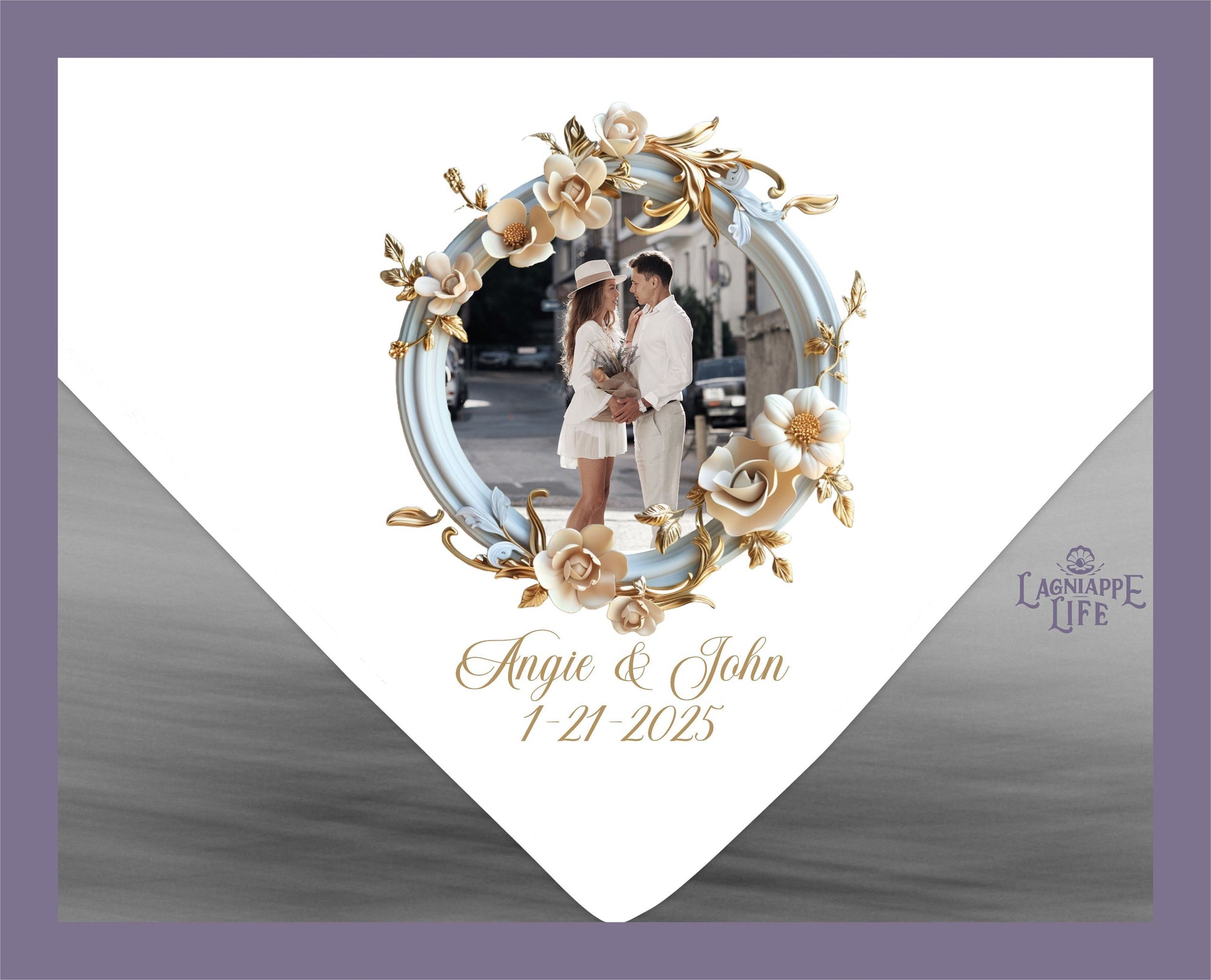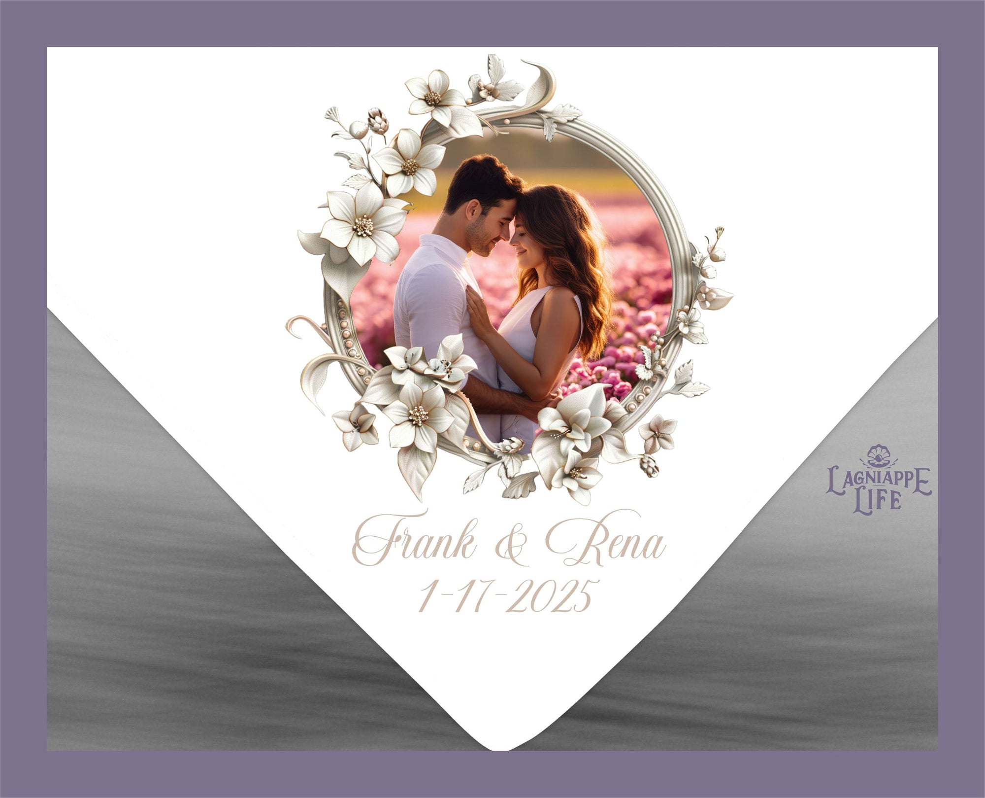 Photo Floral Wreath Printed Handkerchief Personalize Wedding Handkerchiefs Wedding Favors Customize with Your Photo Weddings Events Party