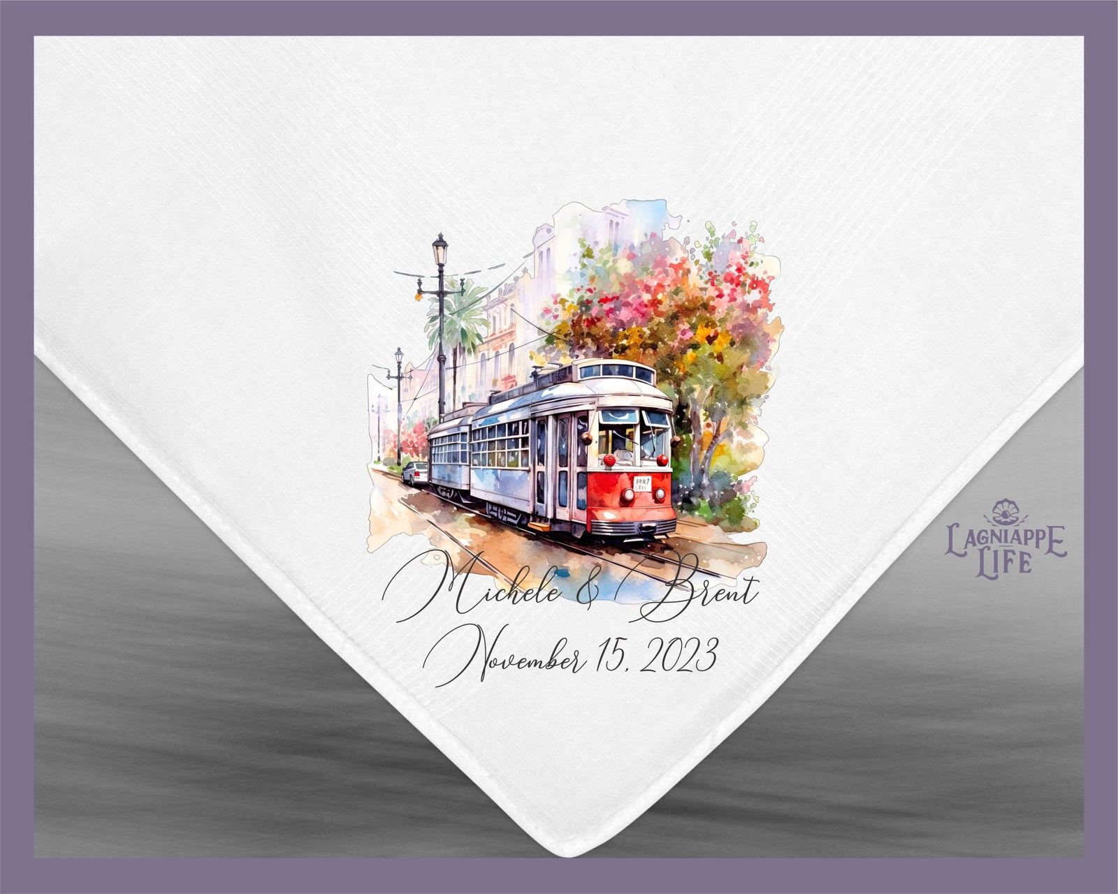 Streetcar Second Line Handkerchief | Personalize Handkerchiefs | Wedding Favors | Custom Made for Weddings Events Party |