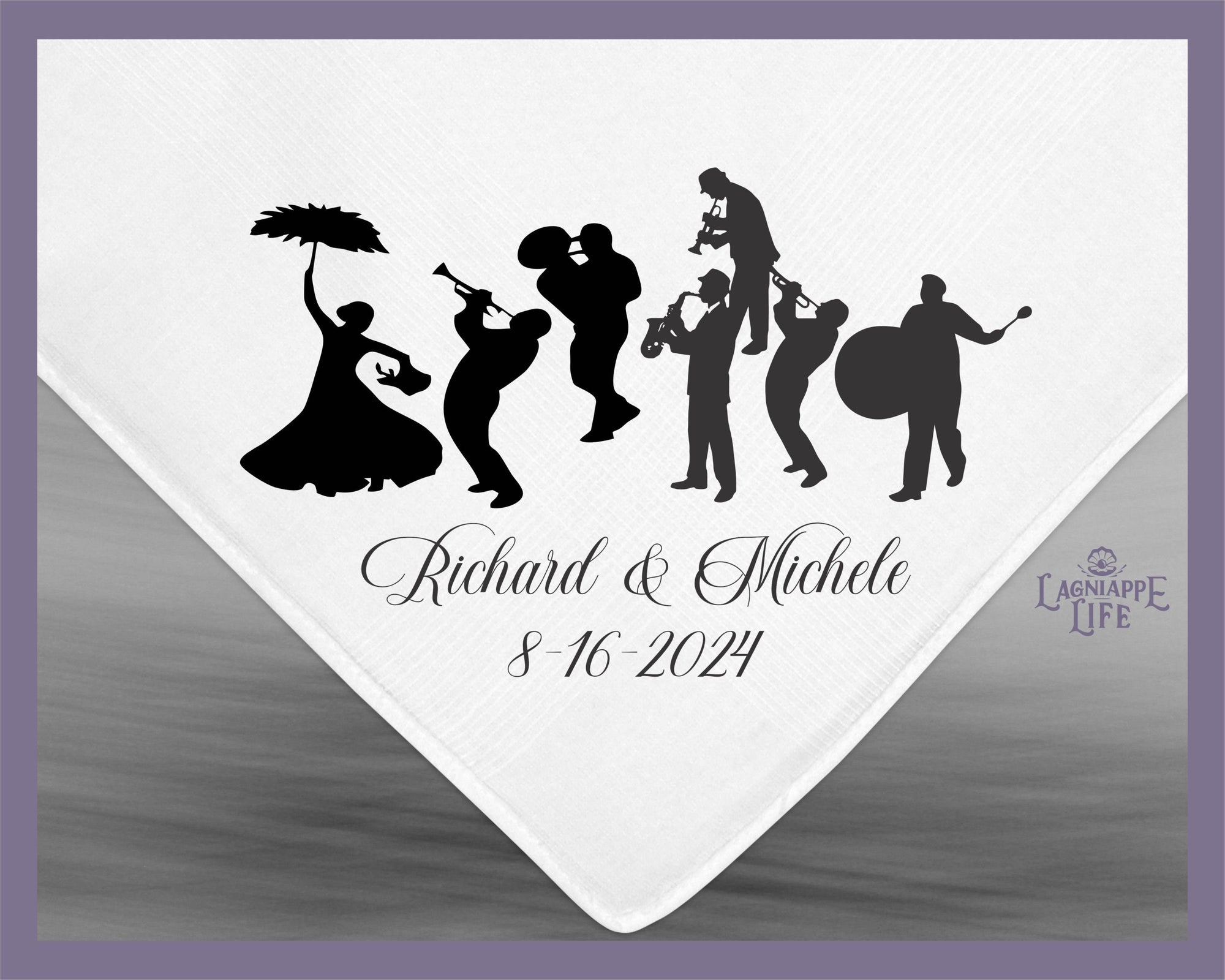 Silhouette Brass Band Second Line Personalized Handkerchiefs Customize Handkerchiefs with Your Information Wedding Favor Gift Custom