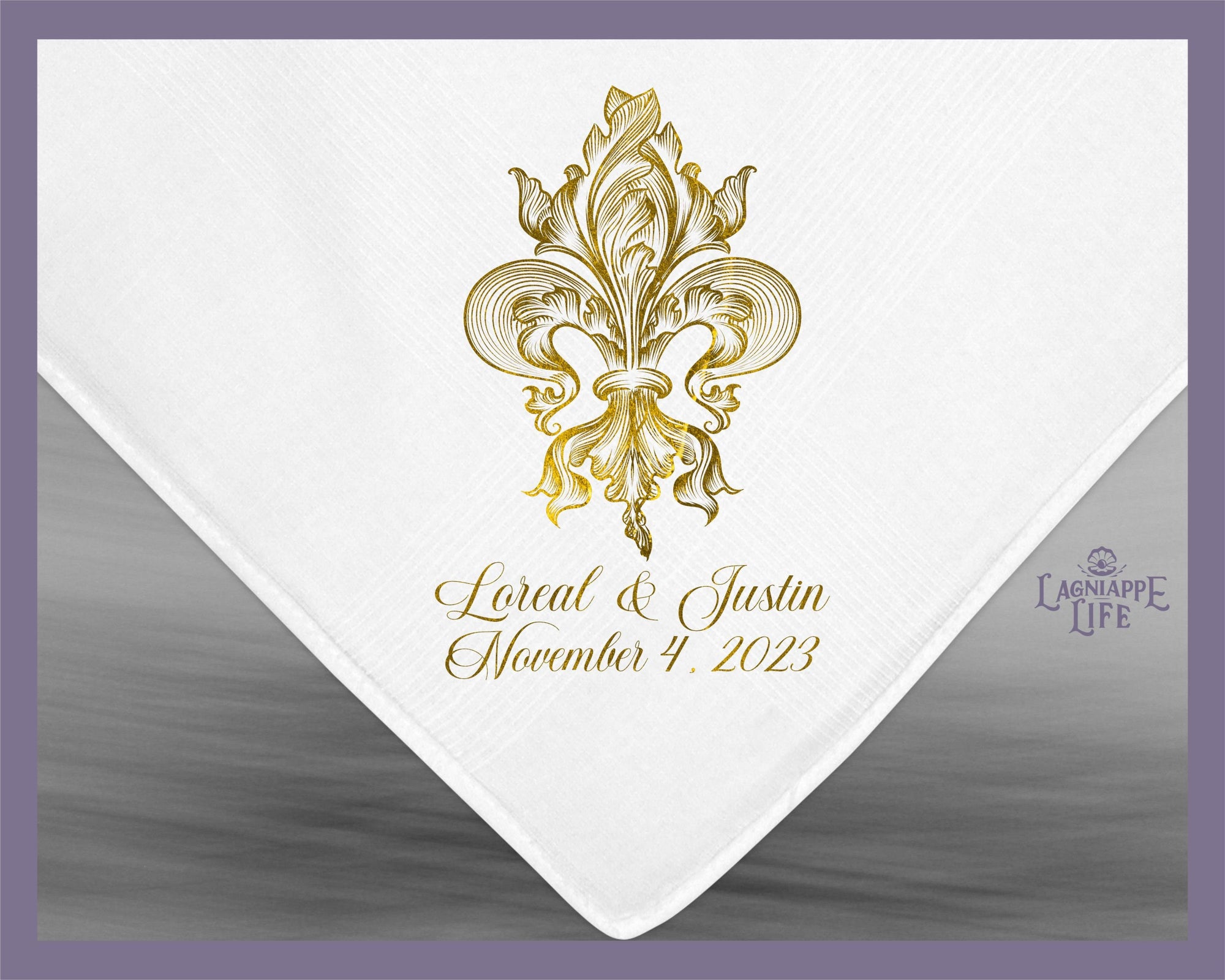 Gold Fleur De Lis Second Line Handkerchief | Personalize Handkerchiefs | Wedding Favors | Custom Made for Weddings Events Party |