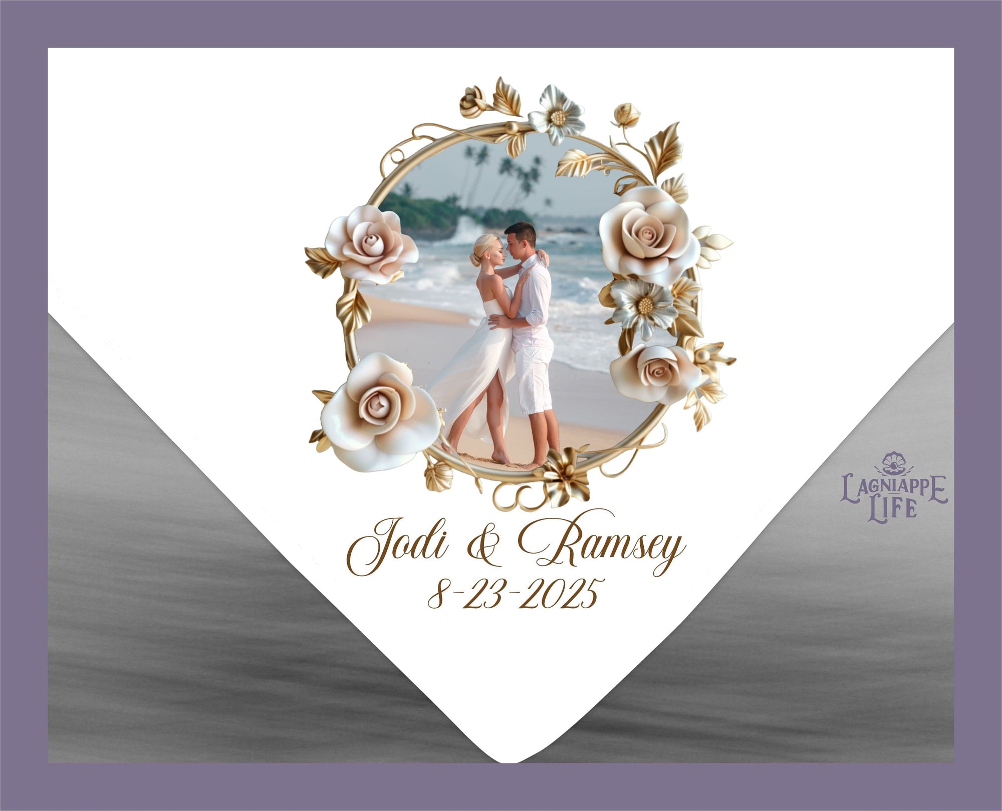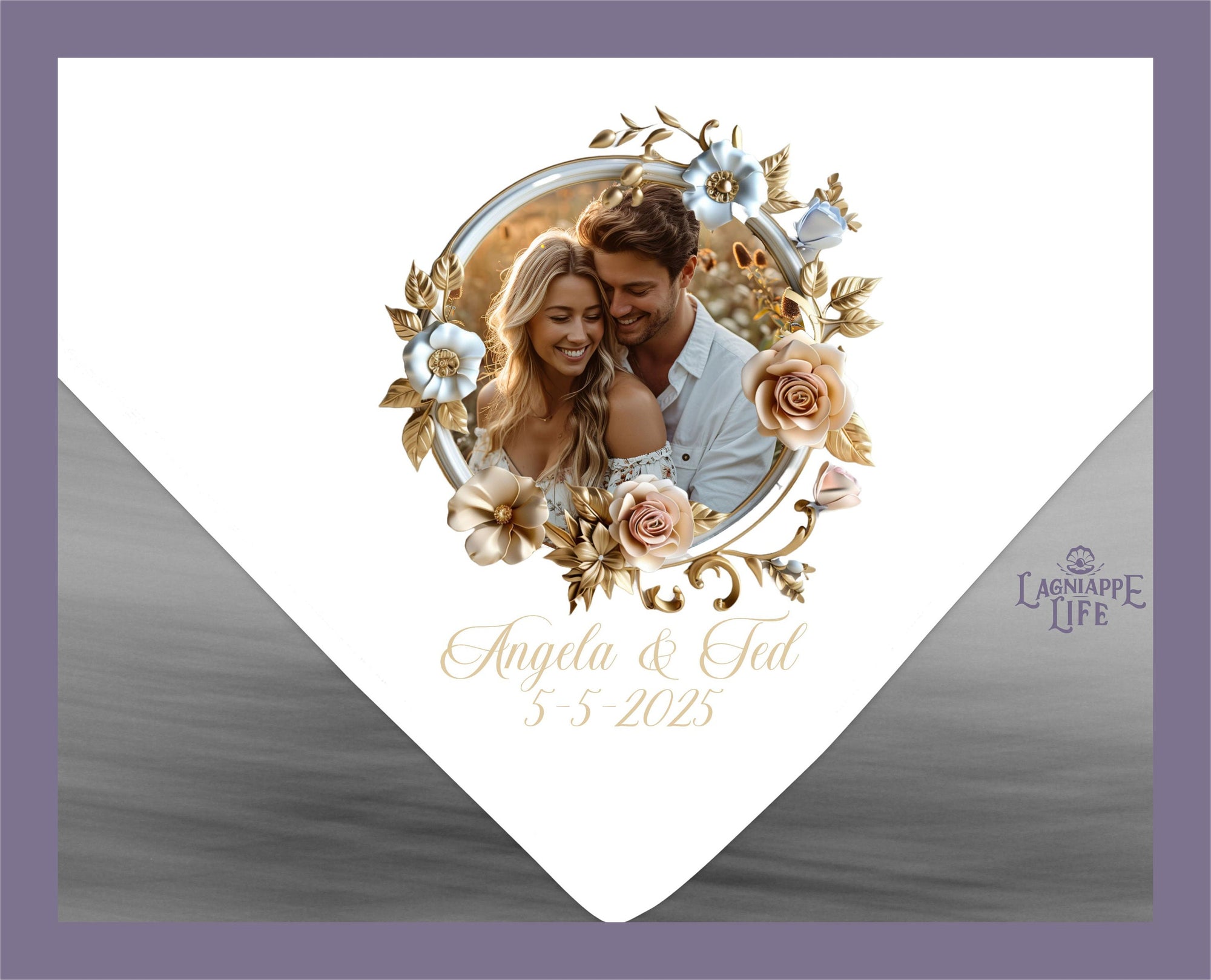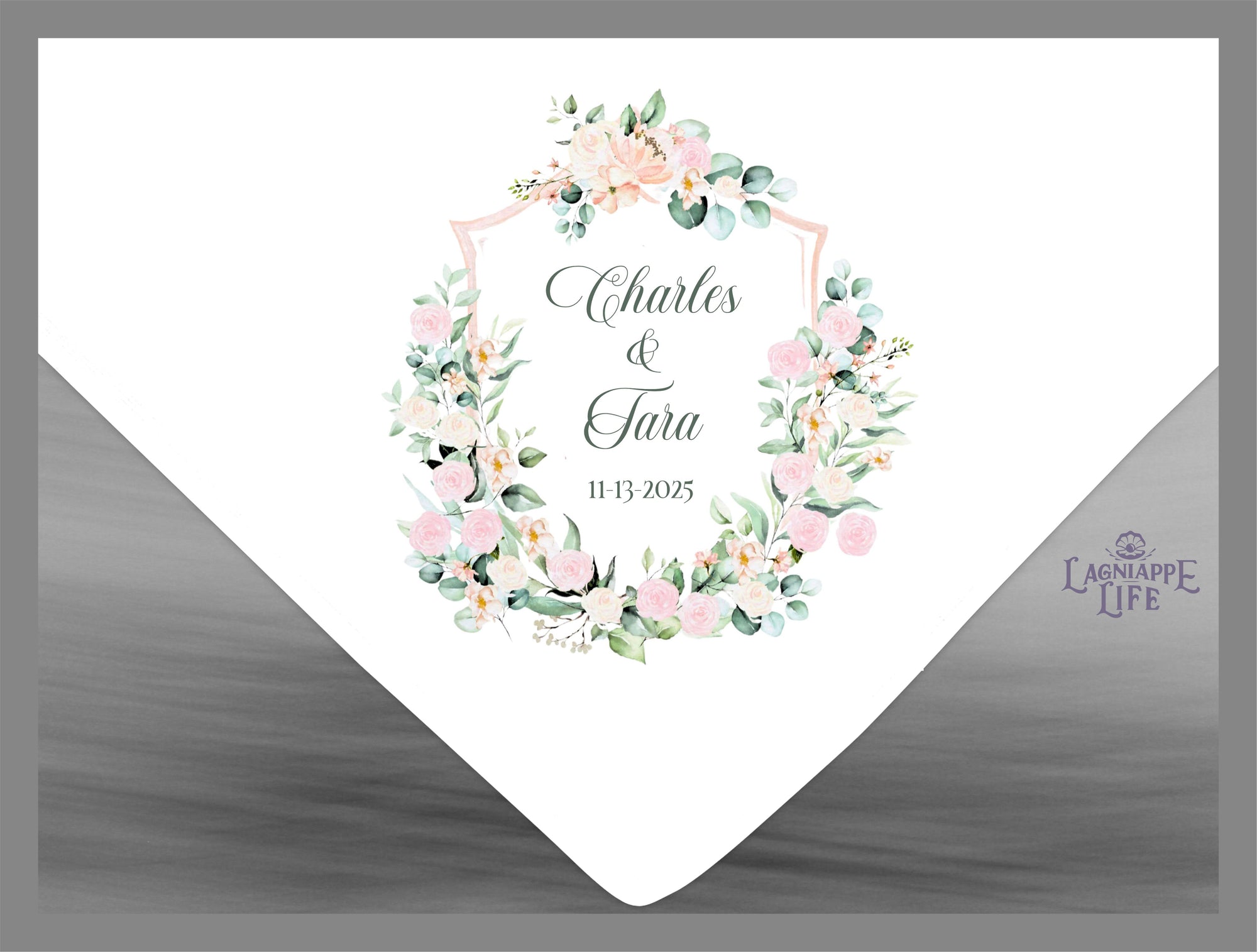 Photo Floral Wreath Printed Handkerchief Personalize Wedding Handkerchiefs Wedding Favors Customize with Your Photo Weddings Events Party