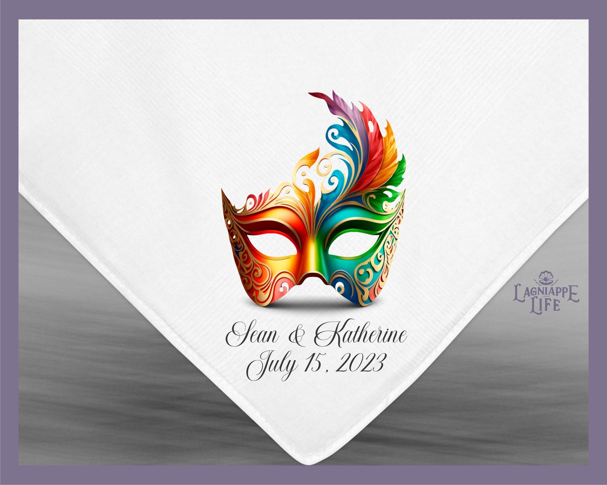 Custom Personalized Handkerchiefs - Weddings Parties Anniversaries More - Elegant Mask Design with Personalization