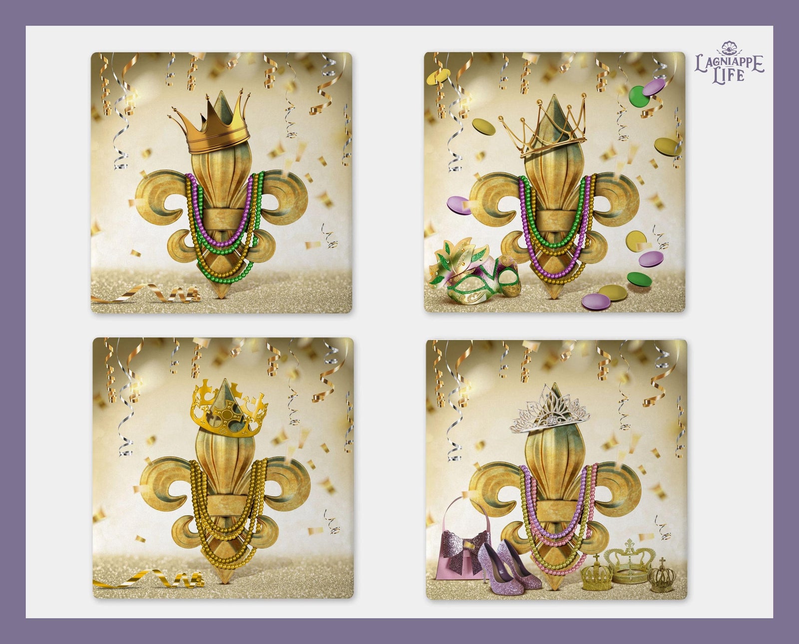 Stone Mardi Gras Coaster Fleur De Lis Collection - Mardi Gras - King/Queen/Prince/Princess Fleur De Lis Collection - New Orleans Culture