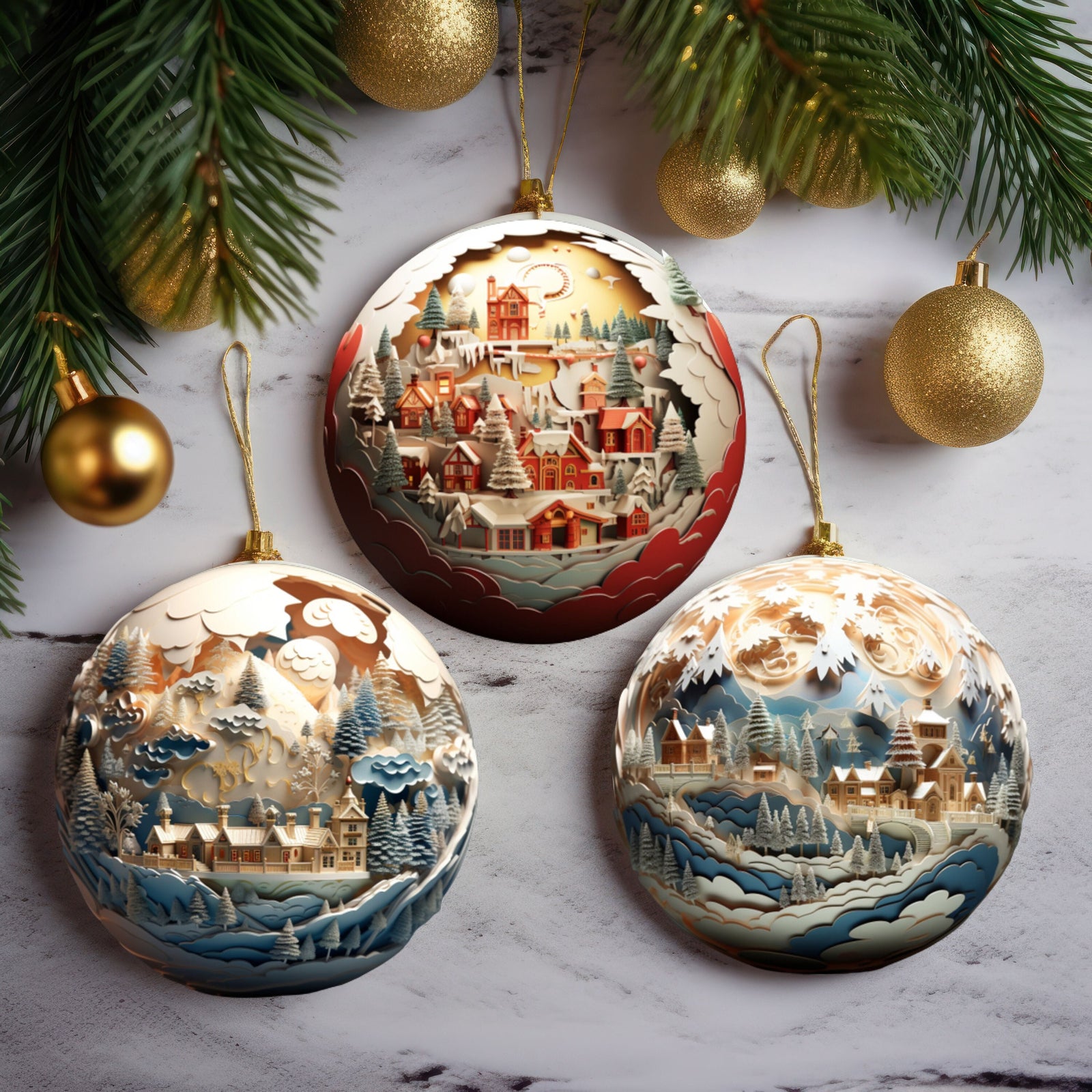 Christmas Village Ornament - Keepsake Ornament - Ornament - Christmas Ornament - Village Ornament - Set of 3 Christmas Villages Ornaments
