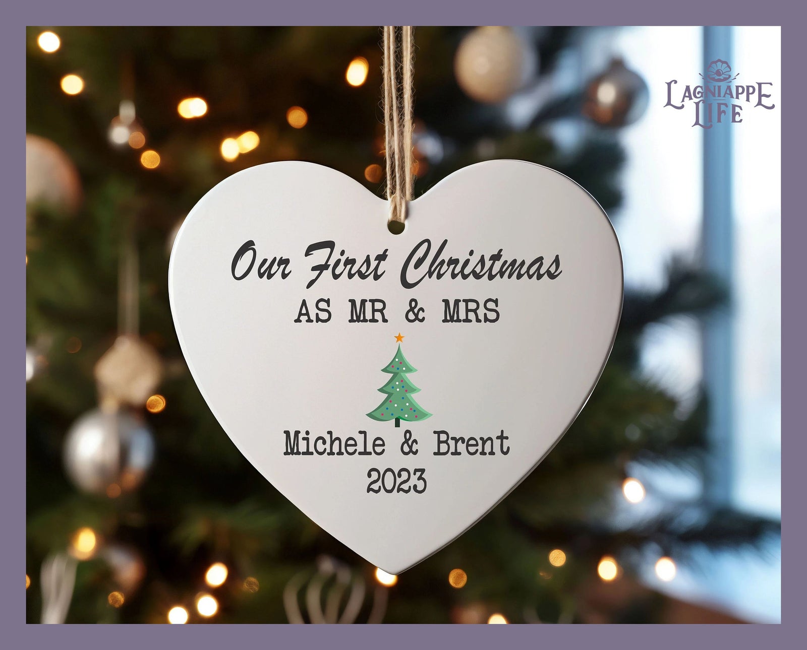 Mr and Mrs Christmas Ornament - Ceramic Ornament - Personalized Wedding Gift - First Christmas Married - Newlywed Gift - Our First Christmas