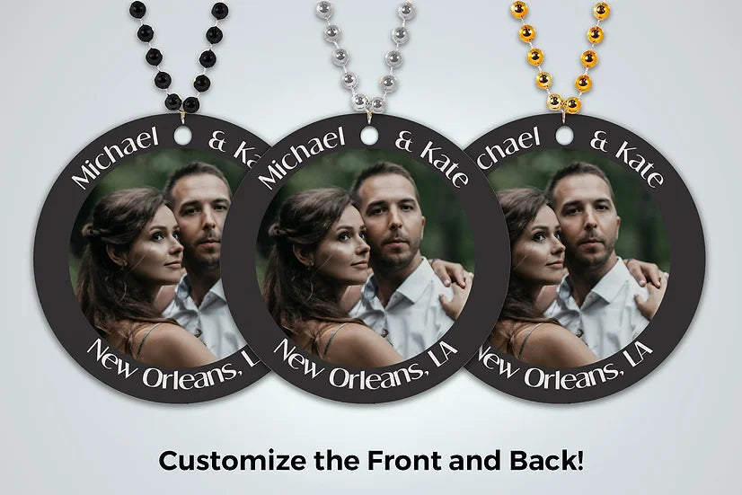 Bring the spirit of Mardi Gras and second line parades to your next celebration with our Custom Medallion Beads. Whether you're planning a wedding, hosting a party, attending a convention, or organizing a special event, these beads add a festive and unforgettable touch.