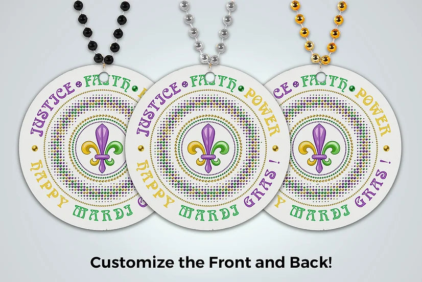 Bring the spirit of Mardi Gras and second line parades to your next celebration with our Custom Medallion Beads. Whether you're planning a wedding, hosting a party, attending a convention, or organizing a special event, these beads add a festive and unforgettable touch.
