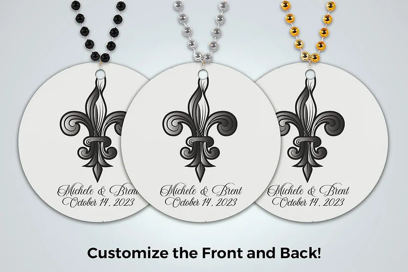 Bring the spirit of Mardi Gras and second line parades to your next celebration with our Custom Medallion Beads. Whether you're planning a wedding, hosting a party, attending a convention, or organizing a special event, these beads add a festive and unforgettable touch.