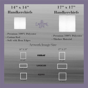 We offer white handkerchiefs in two sizes: 14" x 14" and 17" x 17". Personalize your handkerchiefs with names, dates, or any message you desire. Choose from our selection of artwork, provide your own artwork, or use your business logo.